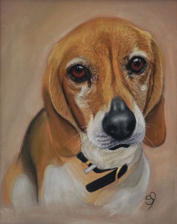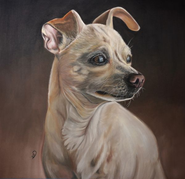 SOLD "Portrait of a Chihuahua" Pan Pastels and pastel pencils on Pastelmat paper. 20 x 20 inches.